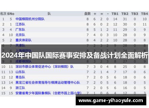 2024年中国队国际赛事安排及备战计划全面解析